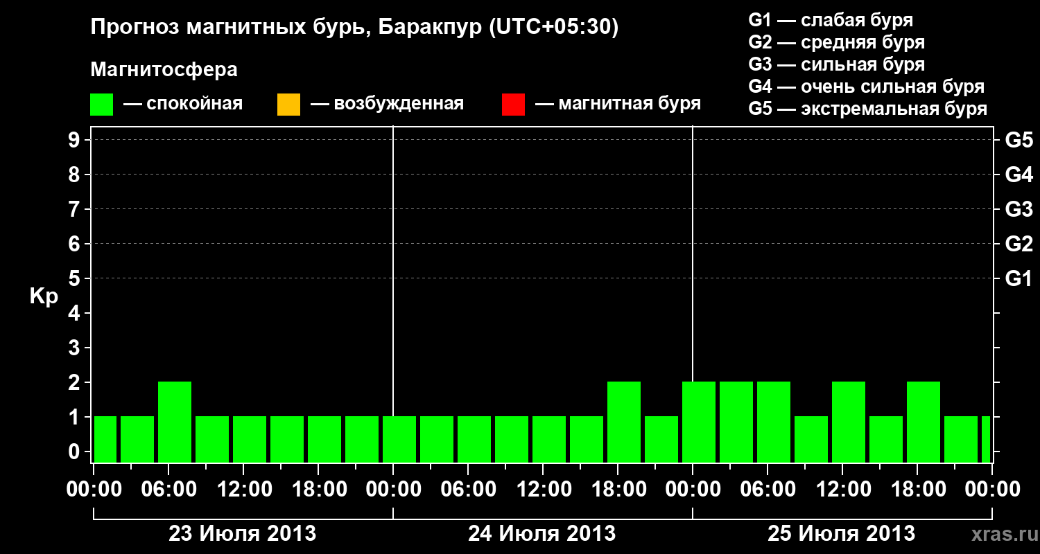 Прогноз магнитных бурь в Баракпуре — 23 июля 2013 года