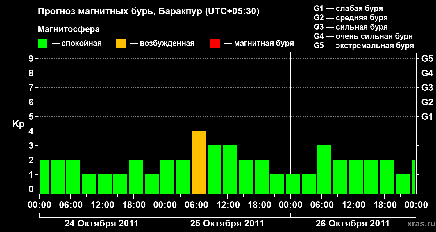 Прогноз магнитных бурь в Баракпуре — 24 октября 2011 года