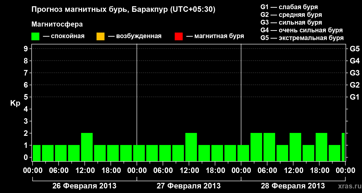 Прогноз магнитных бурь в Баракпуре — 26 февраля 2013 года