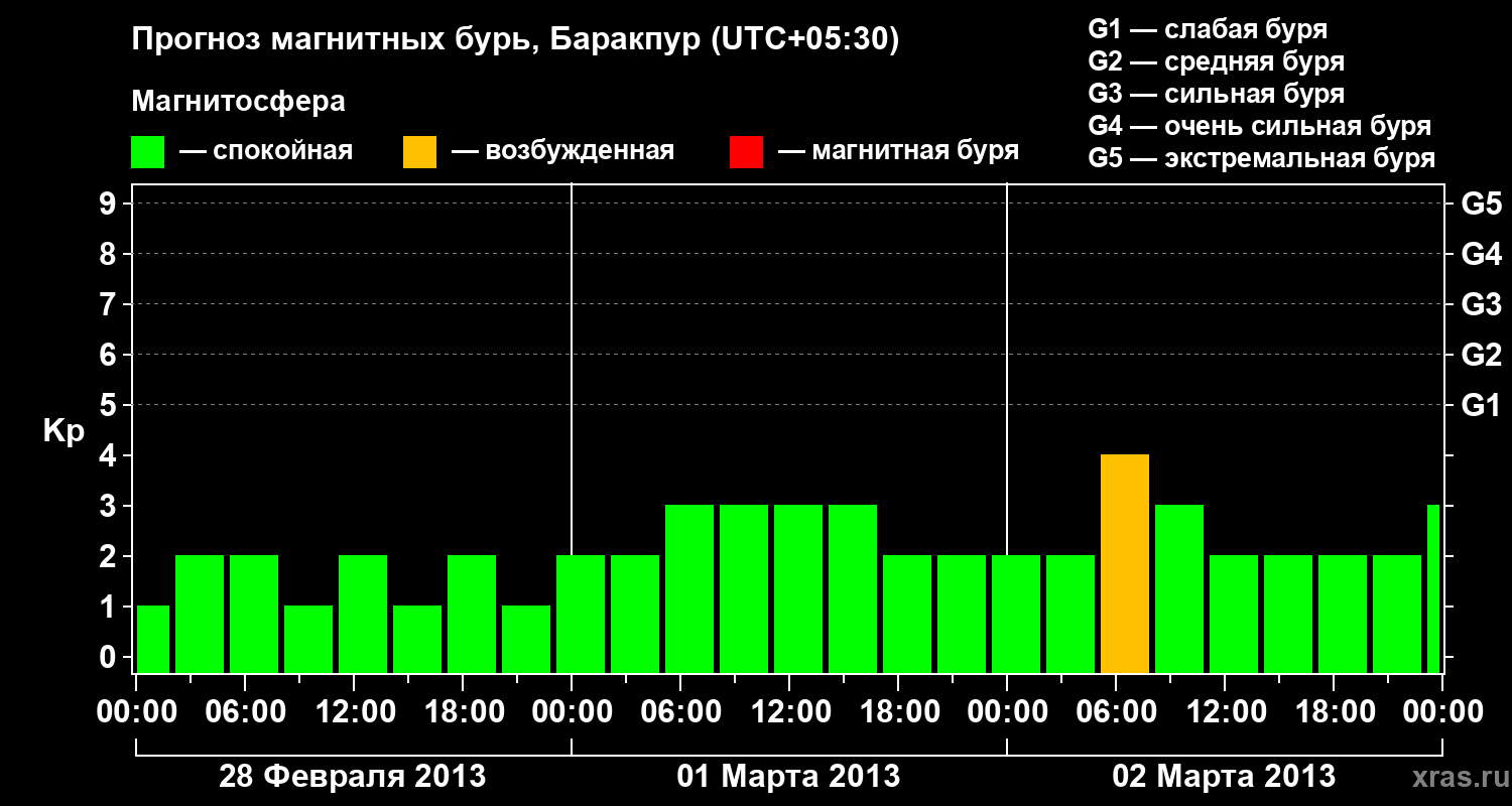 Прогноз магнитных бурь в Баракпуре — 28 февраля 2013 года