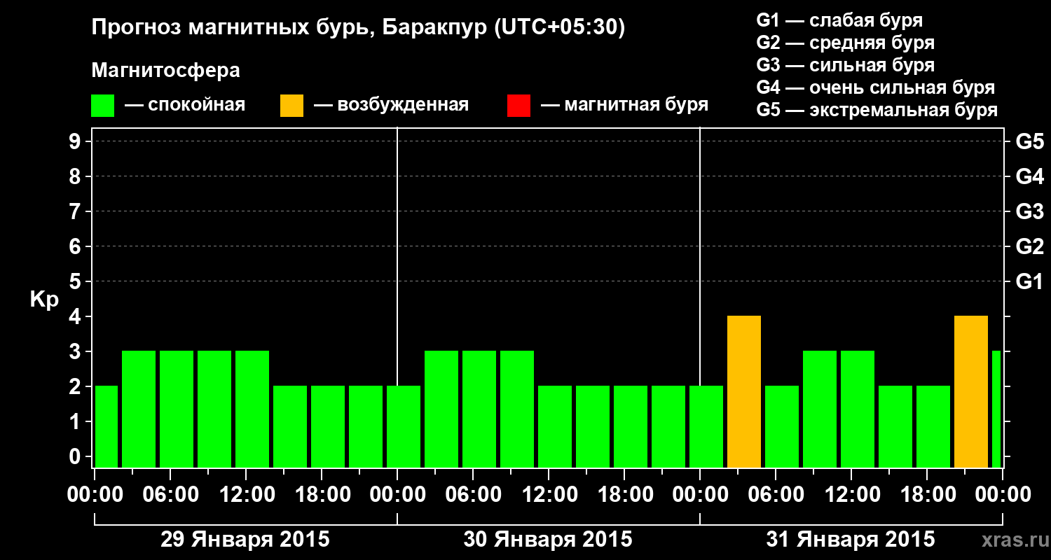 Прогноз магнитных бурь в Баракпуре — 29 января 2015 года