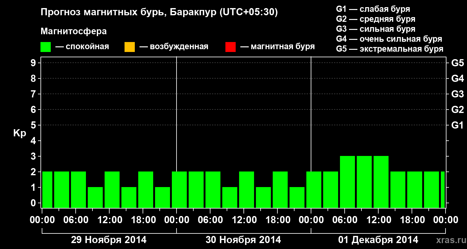 Прогноз магнитных бурь в Баракпуре — 29 ноября 2014 года