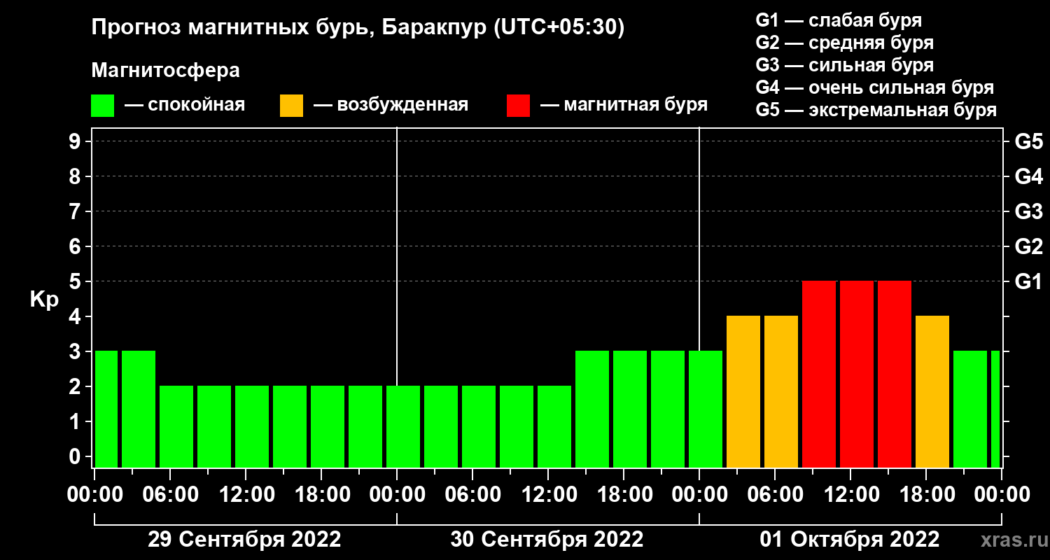 Прогноз магнитных бурь в Баракпуре — 29 сентября 2022 года