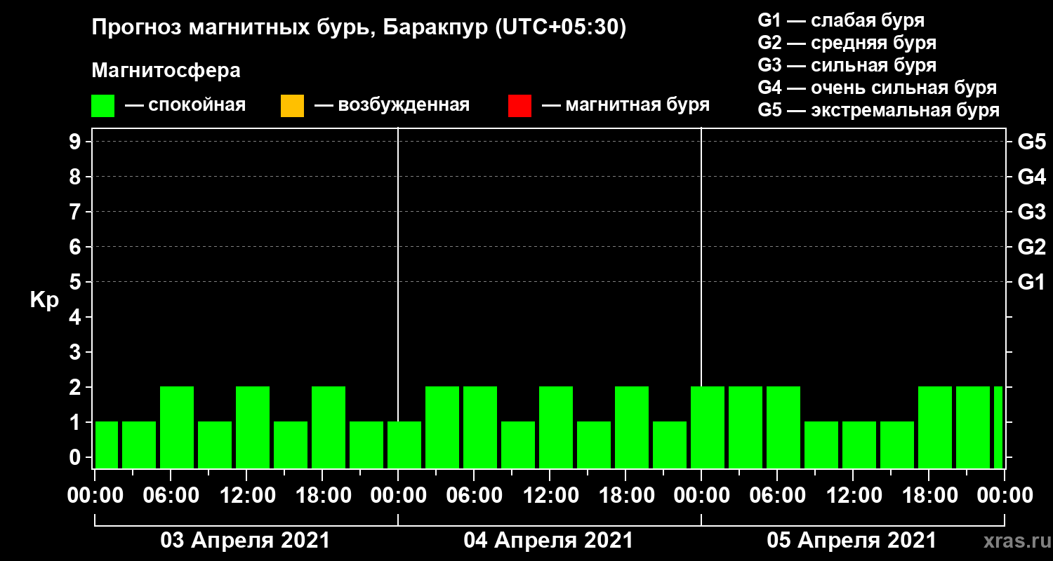 Прогноз магнитных бурь в Баракпуре — 3 апреля 2021 года