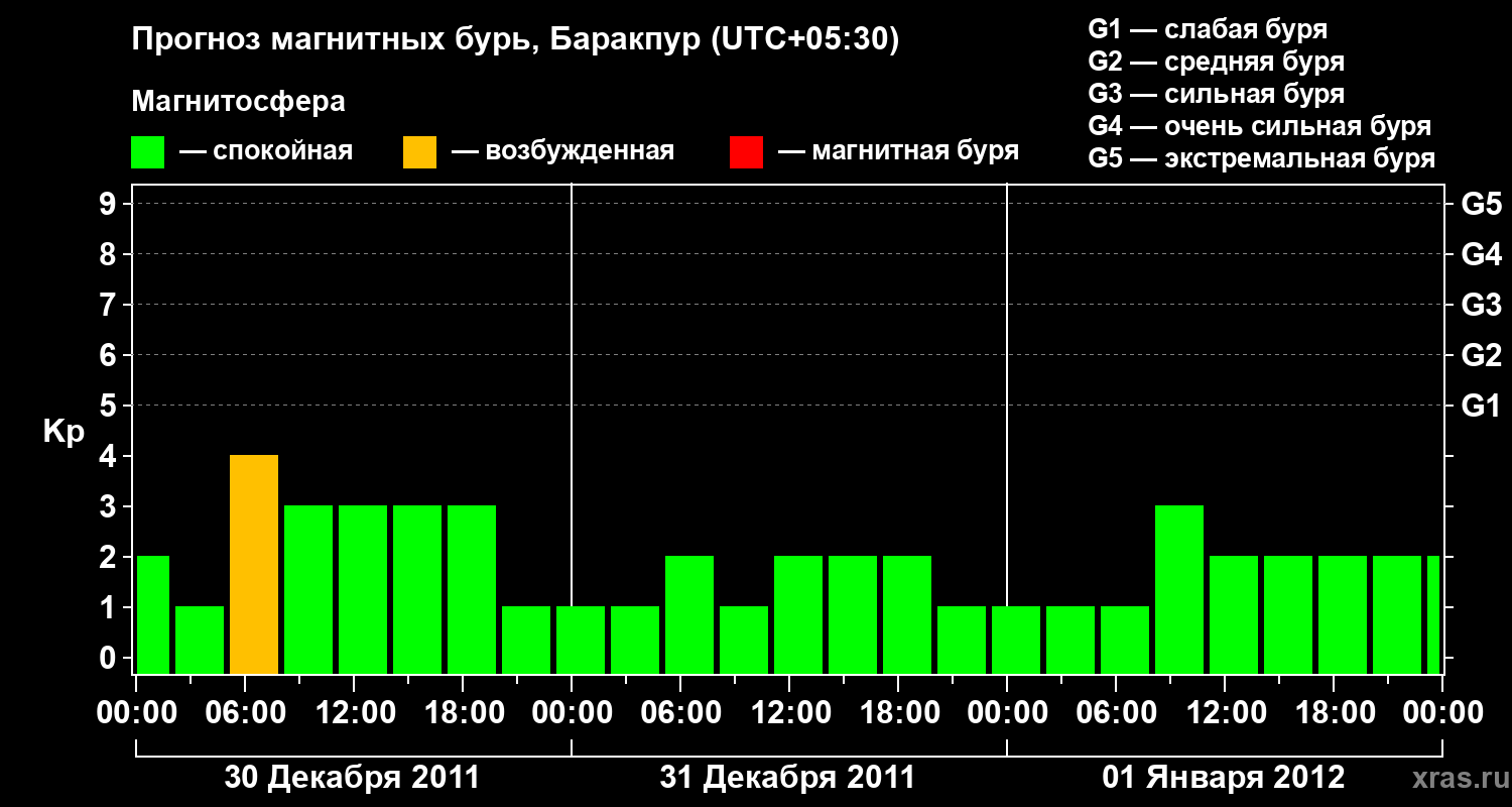 Прогноз магнитных бурь в Баракпуре — 30 декабря 2011 года