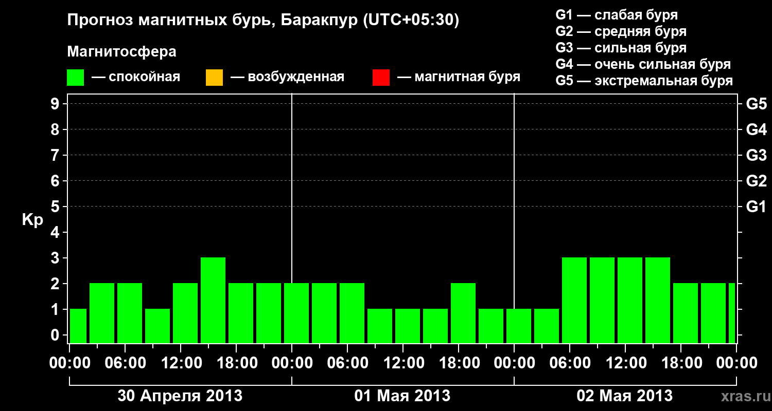Прогноз магнитных бурь в Баракпуре — 30 апреля 2013 года