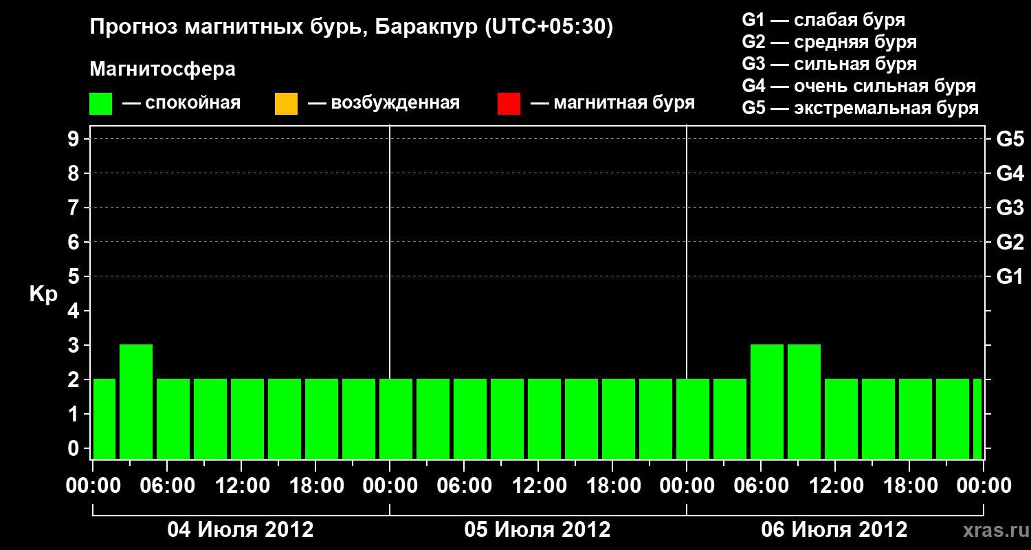 Прогноз магнитных бурь в Баракпуре — 4 июля 2012 года