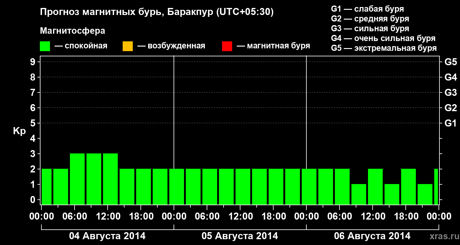 Прогноз магнитных бурь в Баракпуре — 4 августа 2014 года