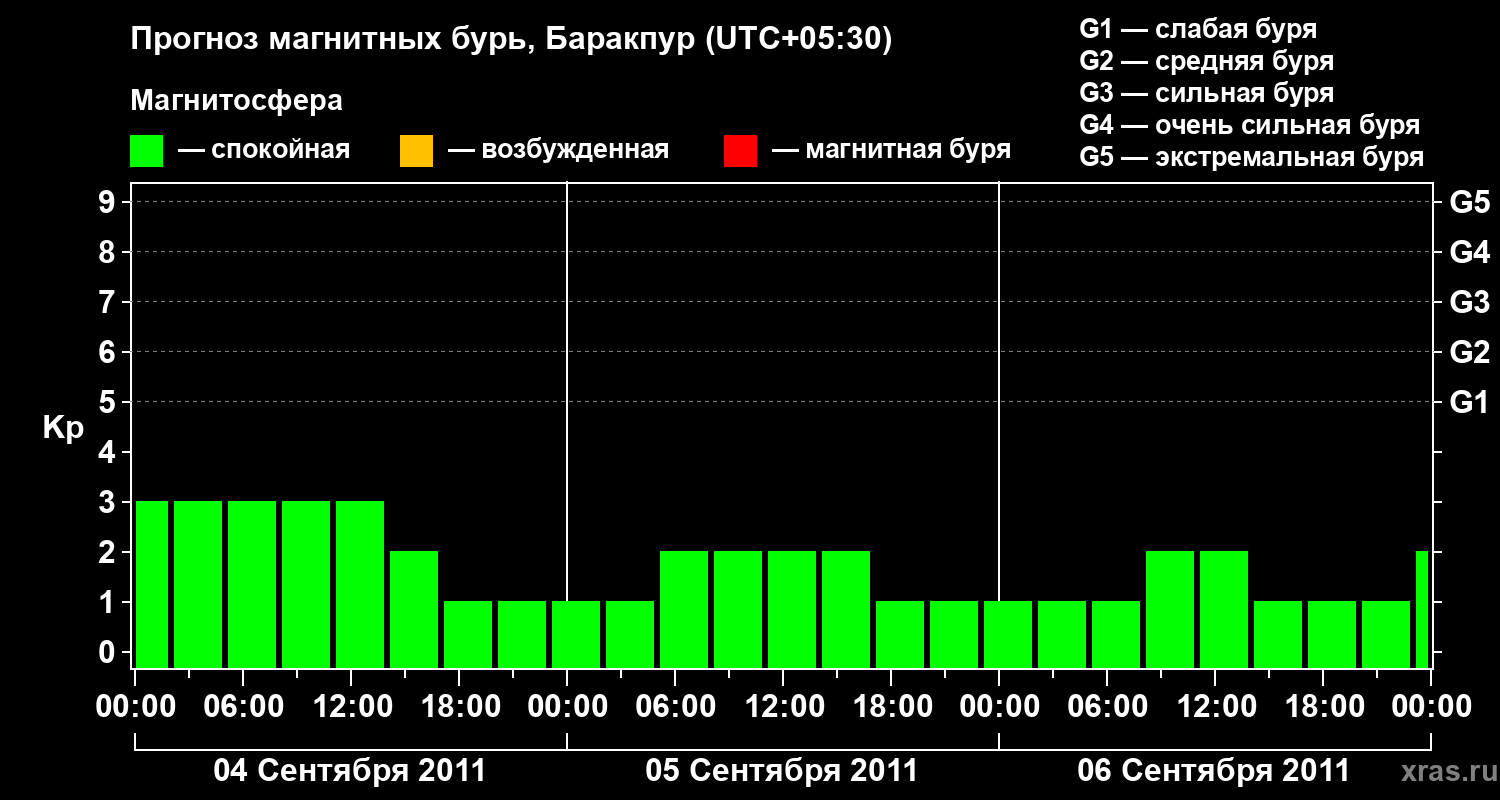 Прогноз магнитных бурь в Баракпуре — 4 сентября 2011 года