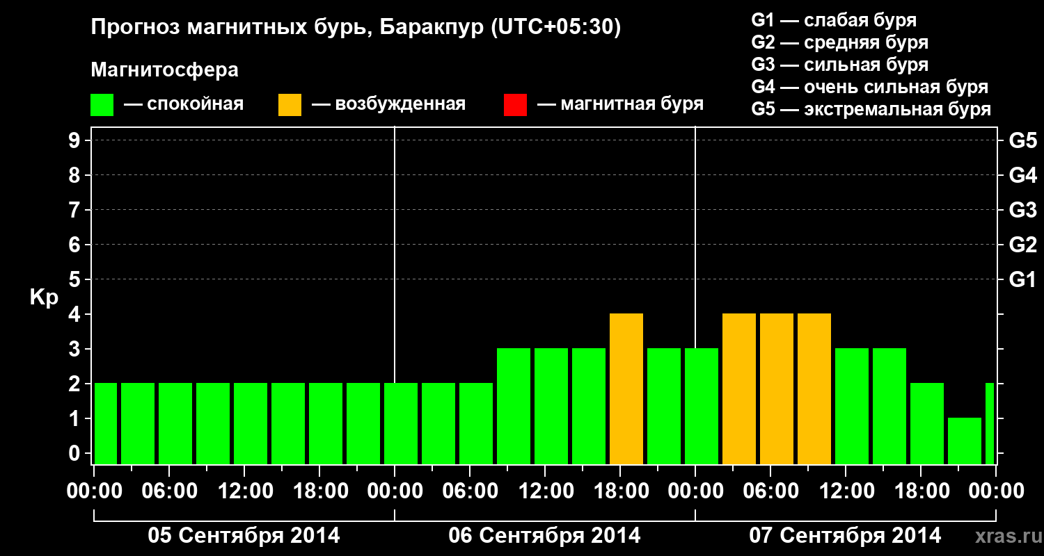Прогноз магнитных бурь в Баракпуре — 5 сентября 2014 года