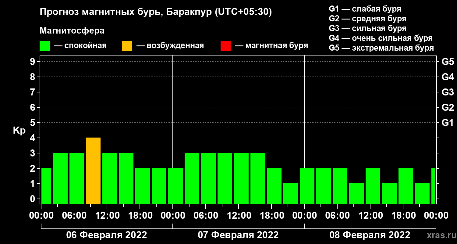 Прогноз магнитных бурь в Баракпуре — 6 февраля 2022 года
