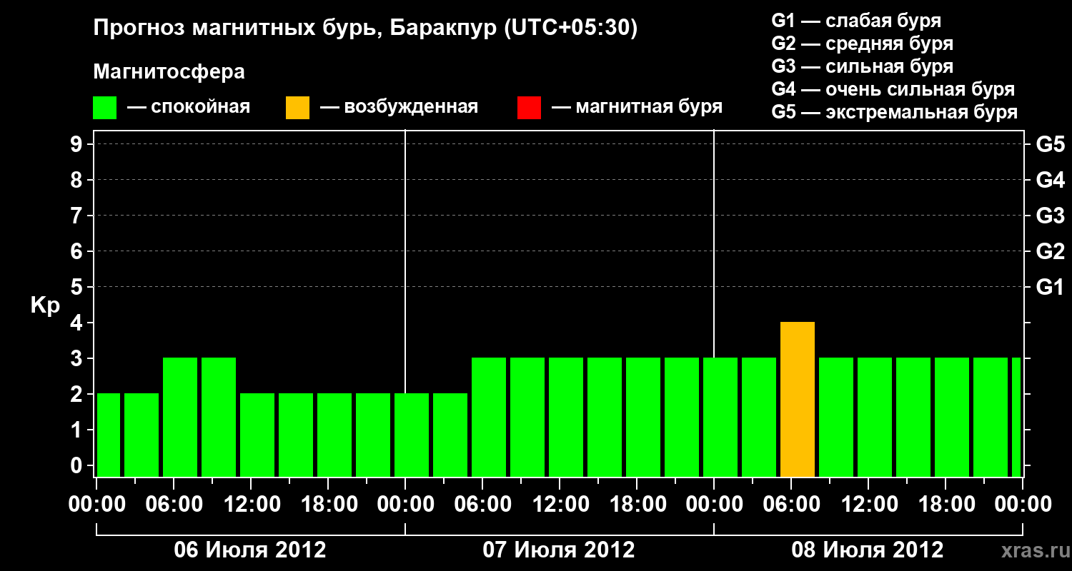 Прогноз магнитных бурь в Баракпуре — 6 июля 2012 года