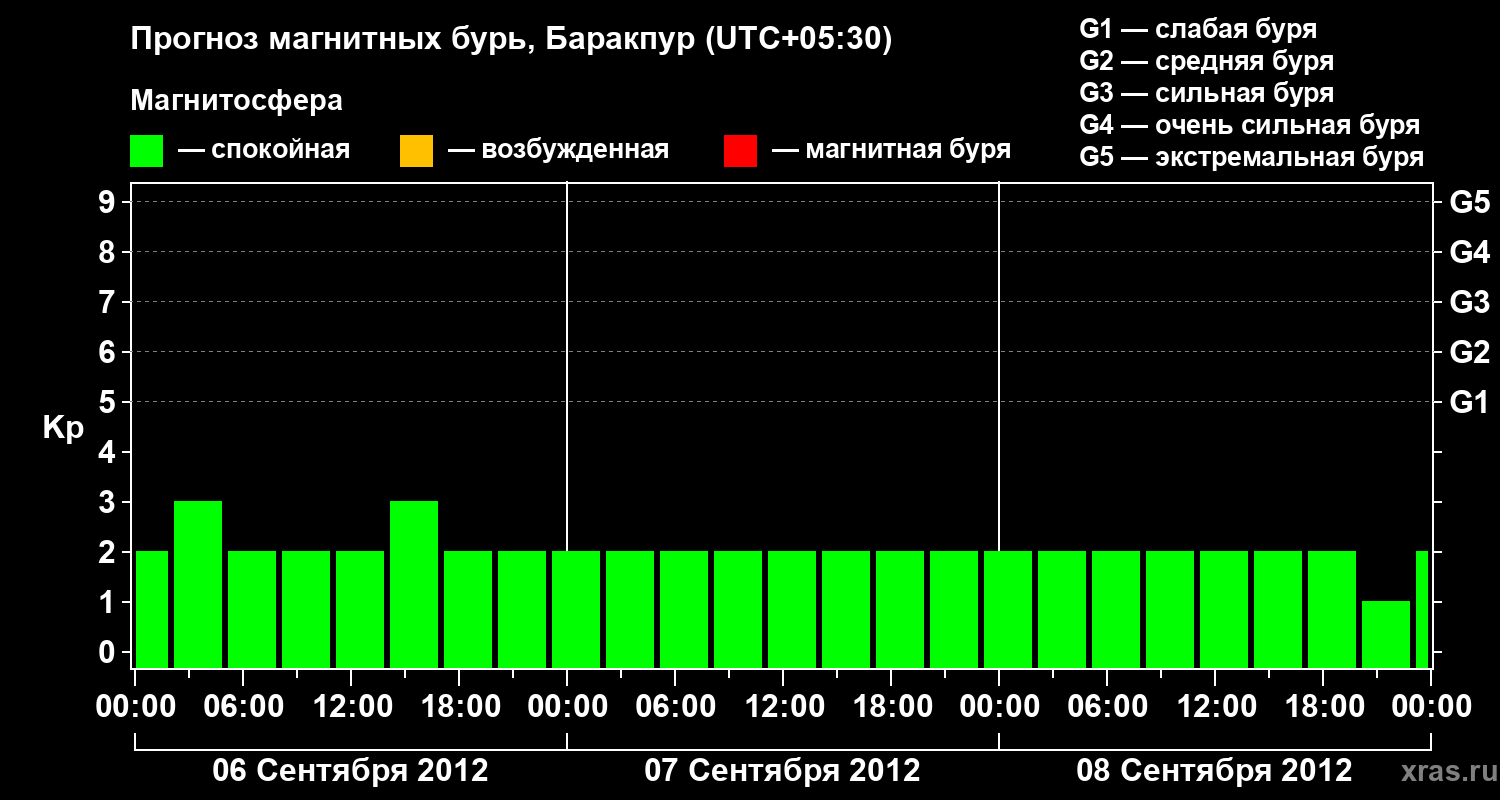 Прогноз магнитных бурь в Баракпуре — 6 сентября 2012 года