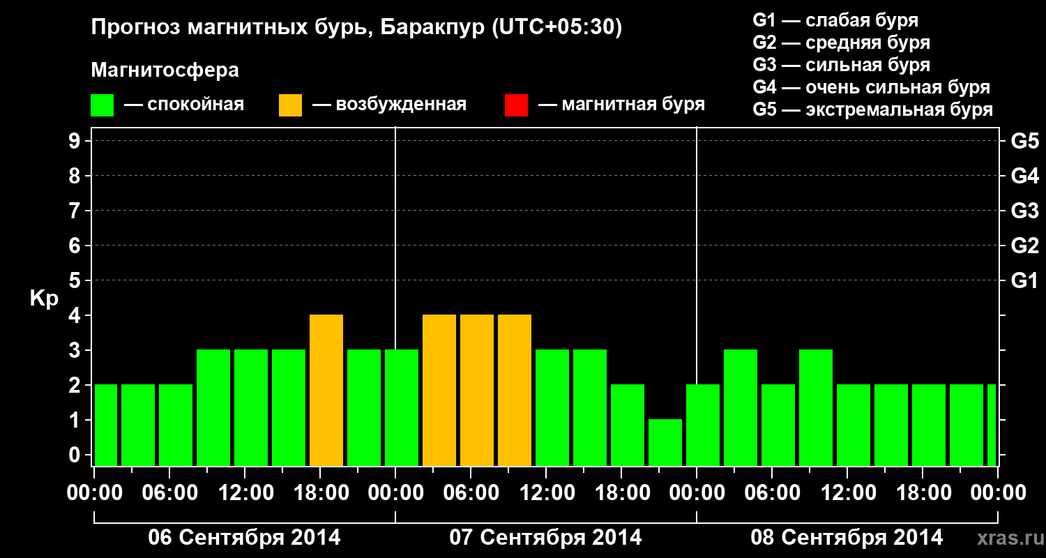 Прогноз магнитных бурь в Баракпуре — 6 сентября 2014 года