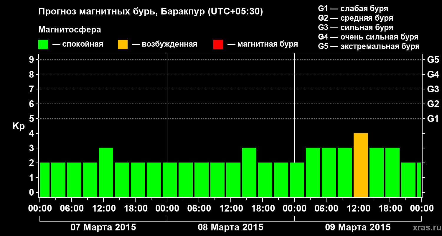 Прогноз магнитных бурь в Баракпуре — 7 марта 2015 года