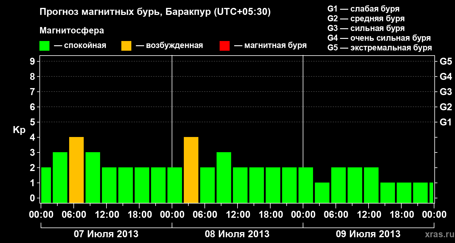 Прогноз магнитных бурь в Баракпуре — 7 июля 2013 года