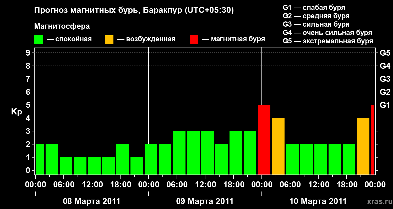 Прогноз магнитных бурь в Баракпуре — 8 марта 2011 года