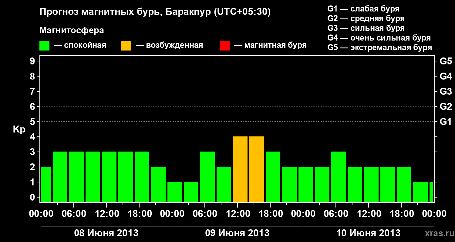 Прогноз магнитных бурь в Баракпуре — 8 июня 2013 года
