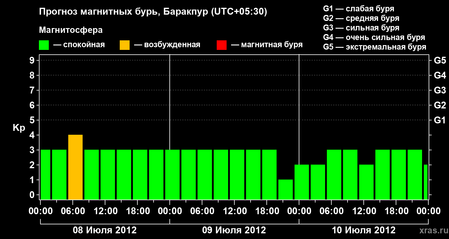 Прогноз магнитных бурь в Баракпуре — 8 июля 2012 года