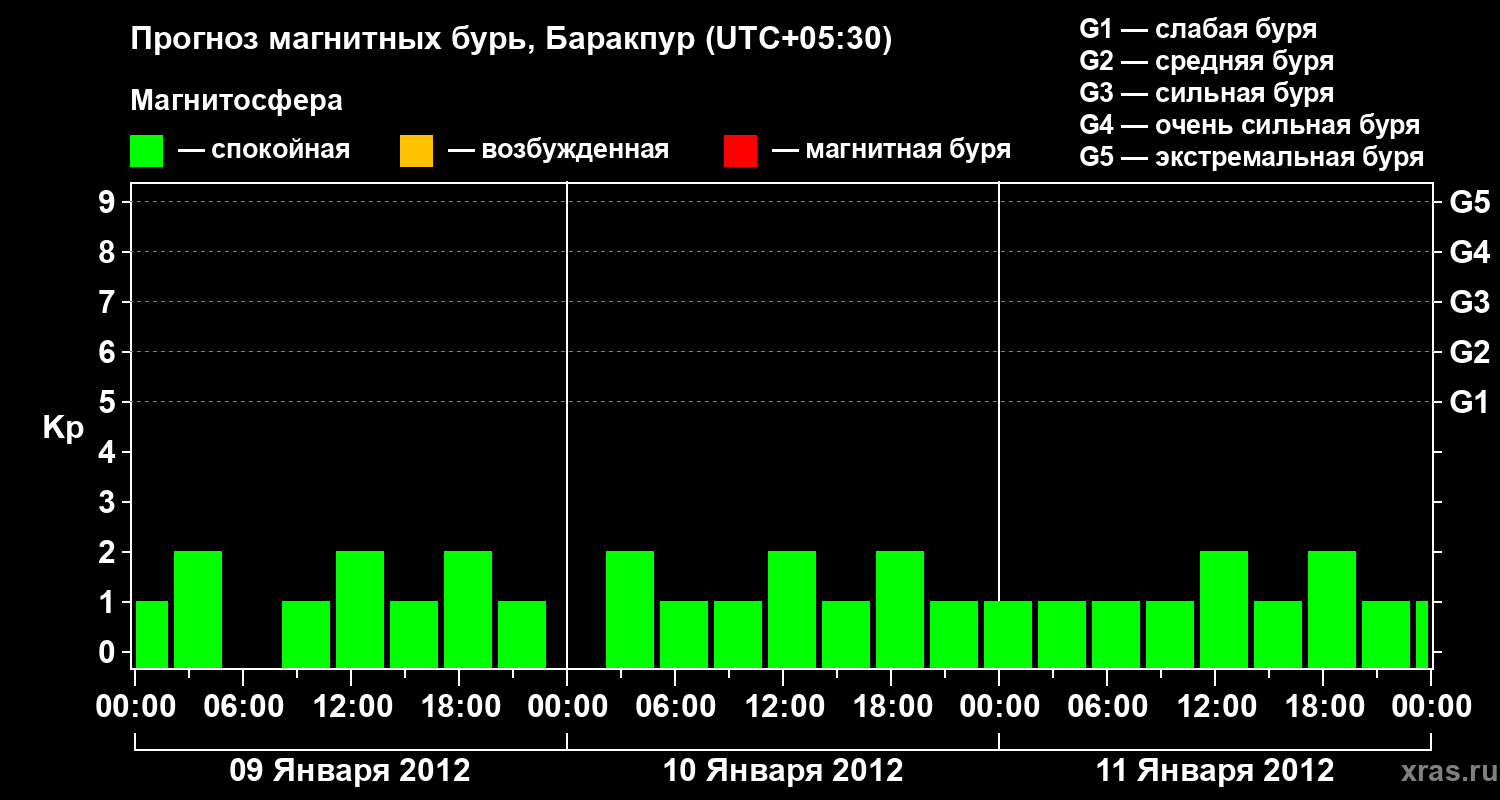 Прогноз магнитных бурь в Баракпуре — 9 января 2012 года