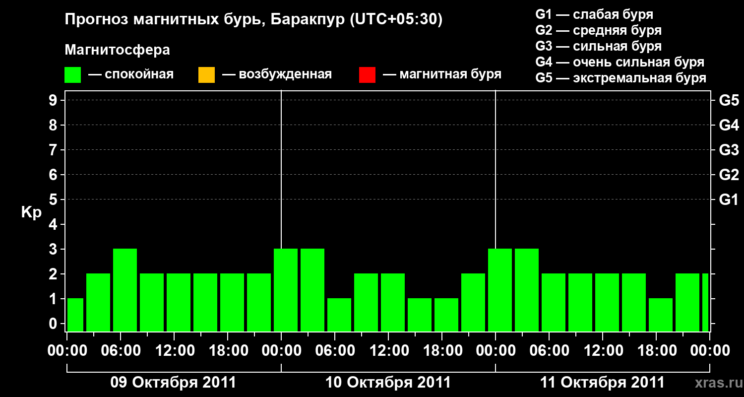 Прогноз магнитных бурь в Баракпуре — 9 октября 2011 года