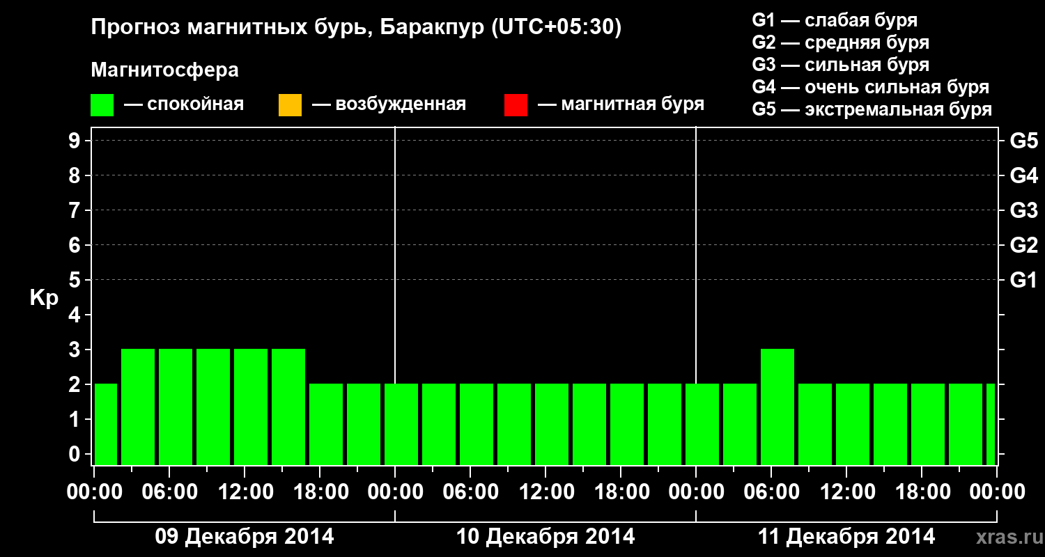 Прогноз магнитных бурь в Баракпуре — 9 декабря 2014 года