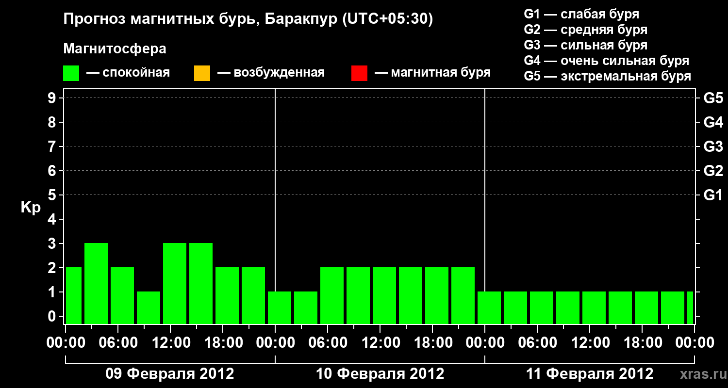 Прогноз магнитных бурь в Баракпуре — 9 февраля 2012 года