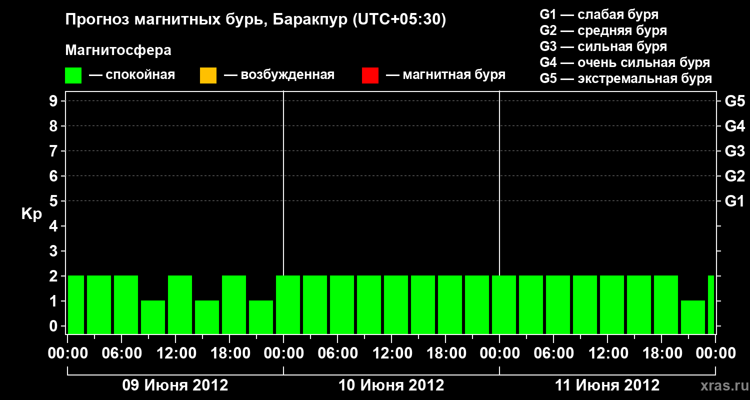 Прогноз магнитных бурь в Баракпуре — 9 июня 2012 года