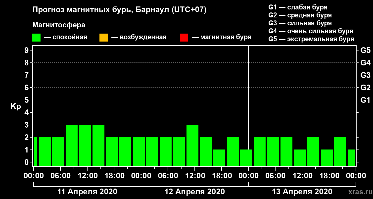 Прогноз магнитных бурь в Барнауле на 11 апреля 2020 года