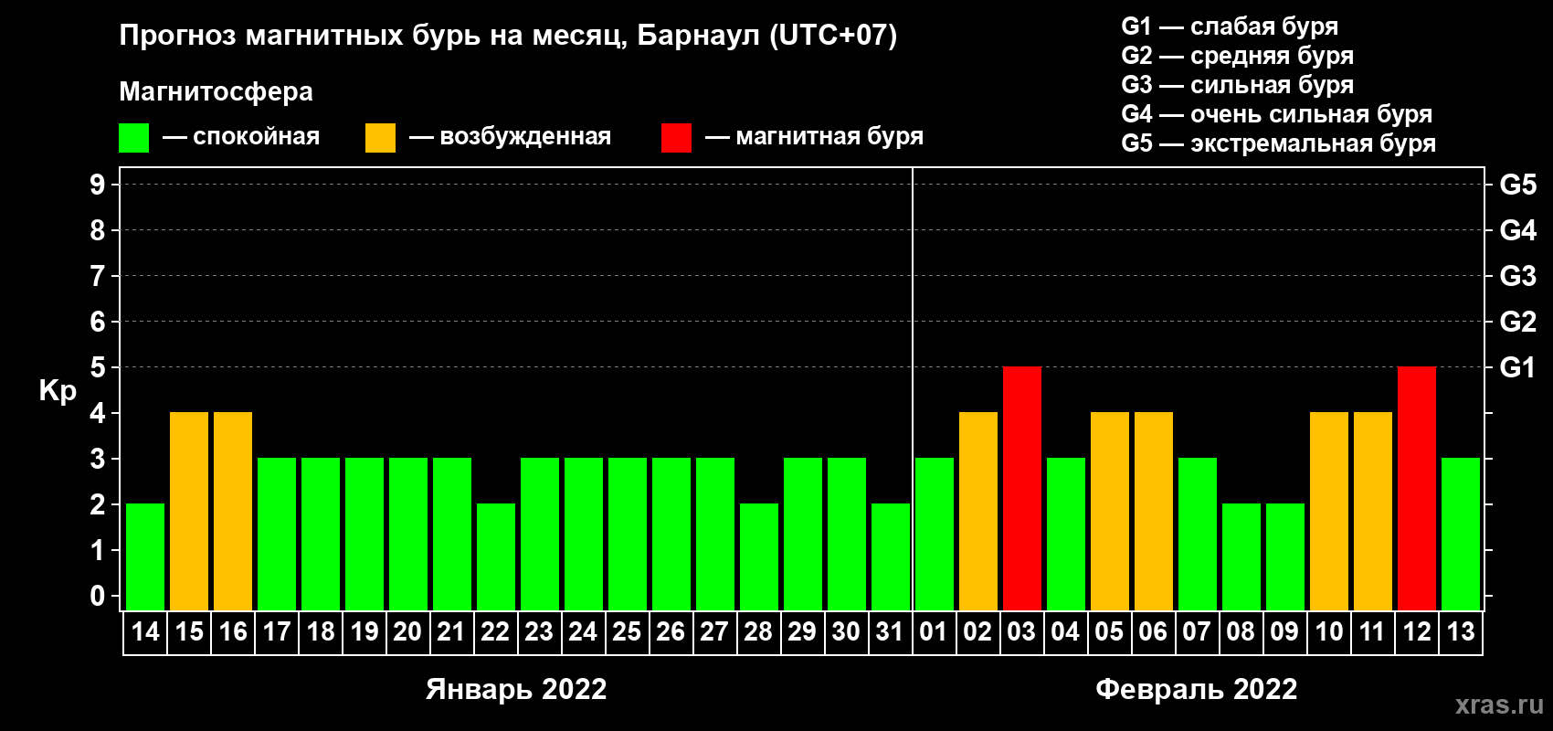 Прогноз магнитных бурь в Барнауле — 14 января 2022 года