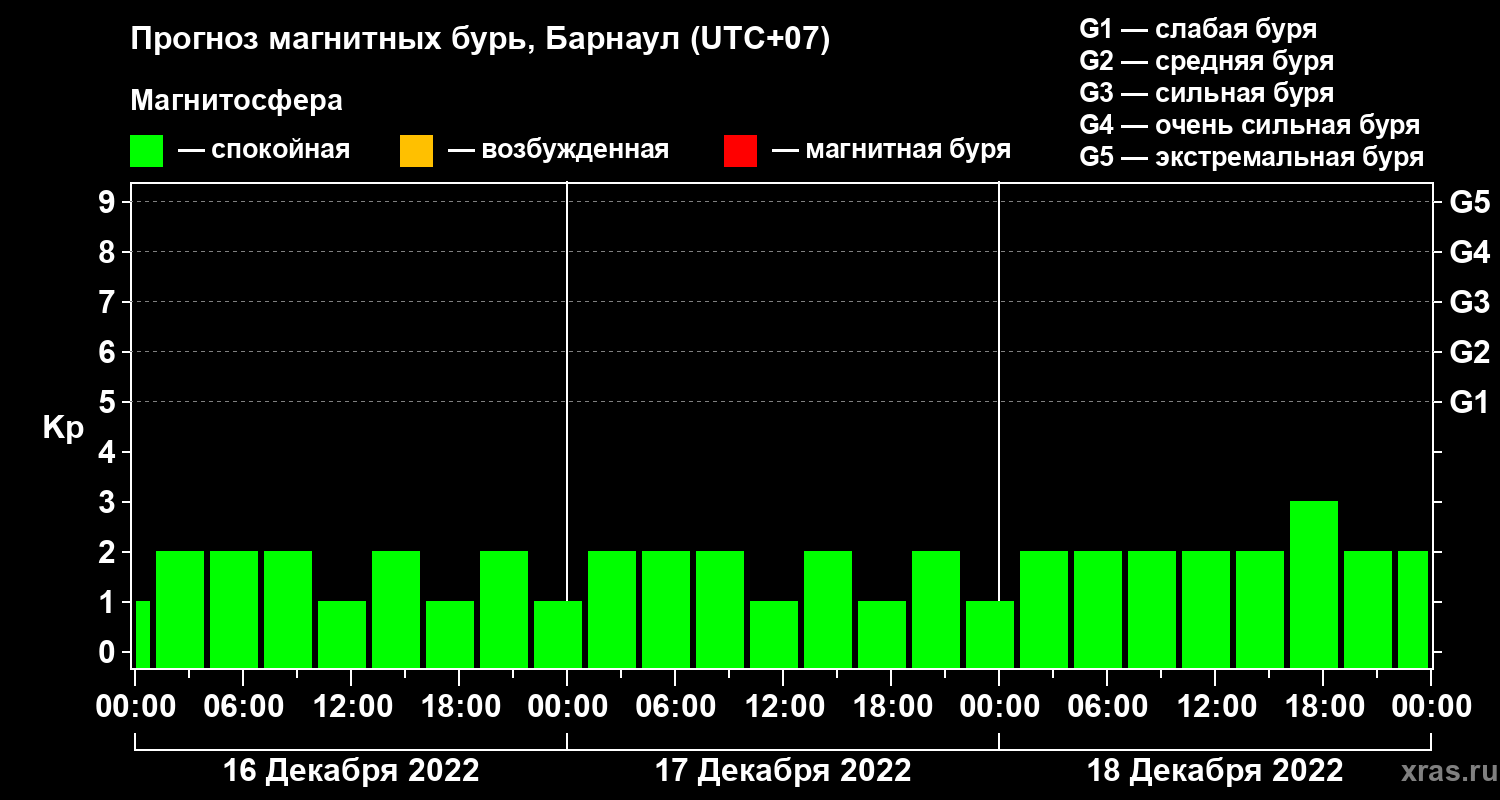 Прогноз магнитных бурь в Барнауле на 16 декабря 2022 года