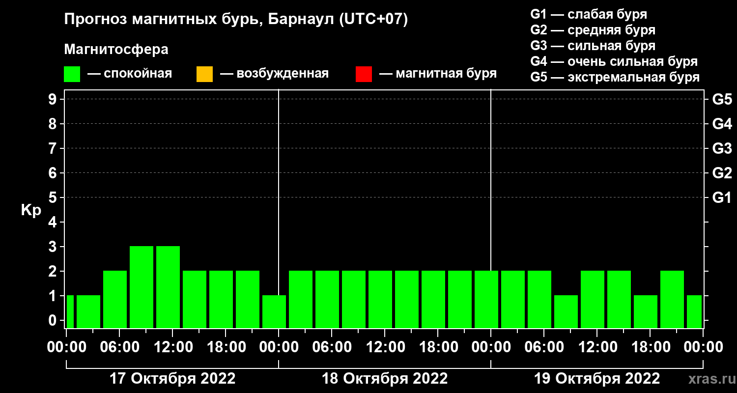Прогноз магнитных бурь в Барнауле — 17 октября 2022 года