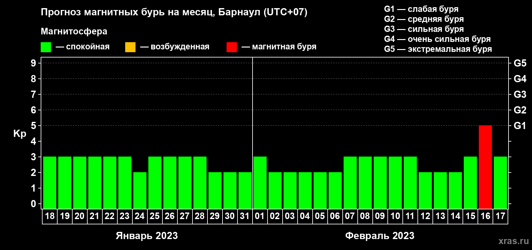 Прогноз магнитных бурь в Барнауле — 18 января 2023 года