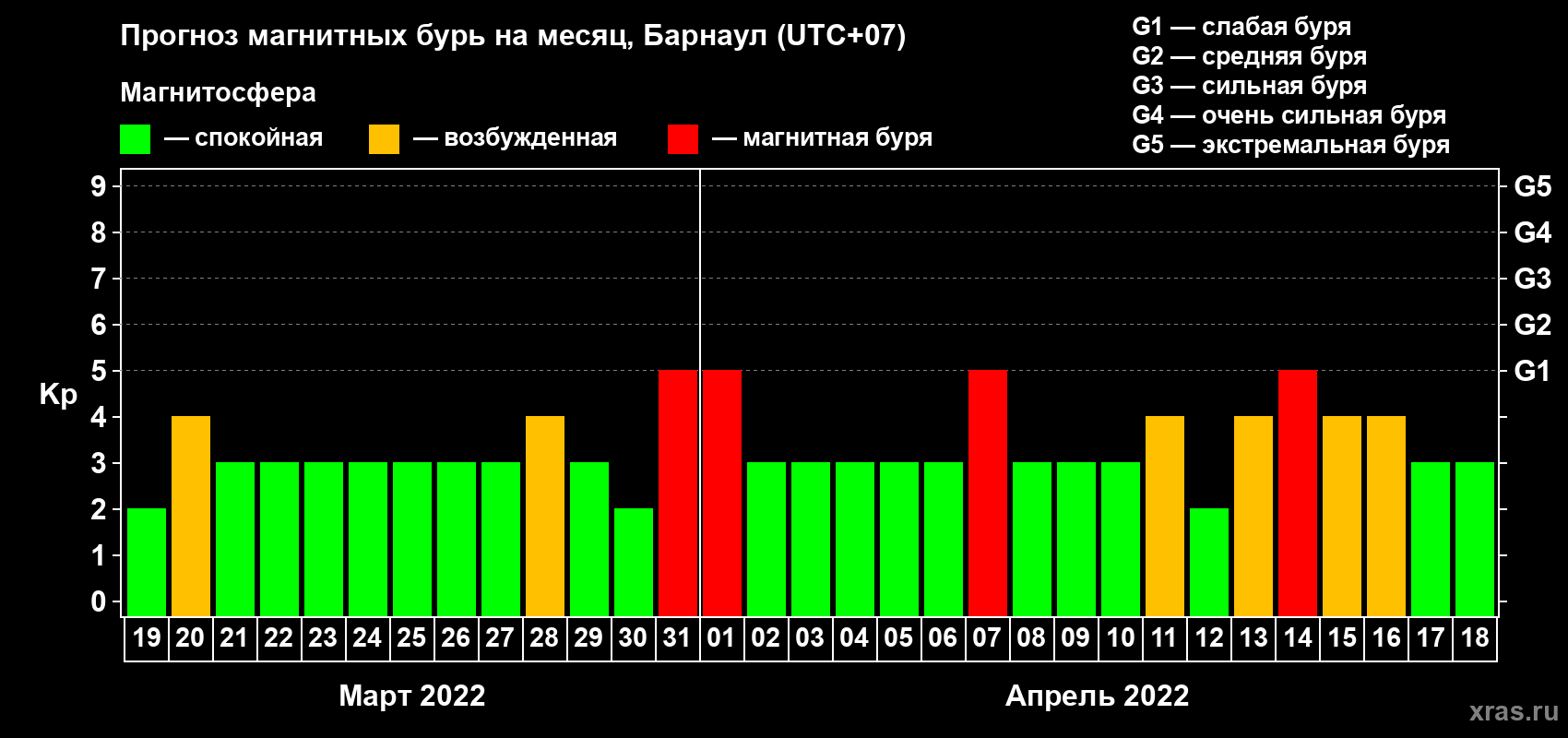 Прогноз магнитных бурь в Барнауле — 19 марта 2022 года