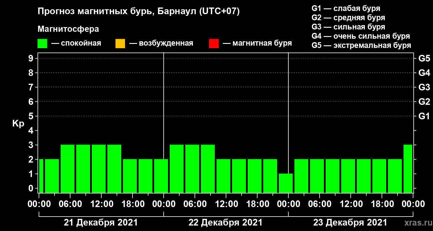 Прогноз магнитных бурь в Барнауле — 21 декабря 2021 года
