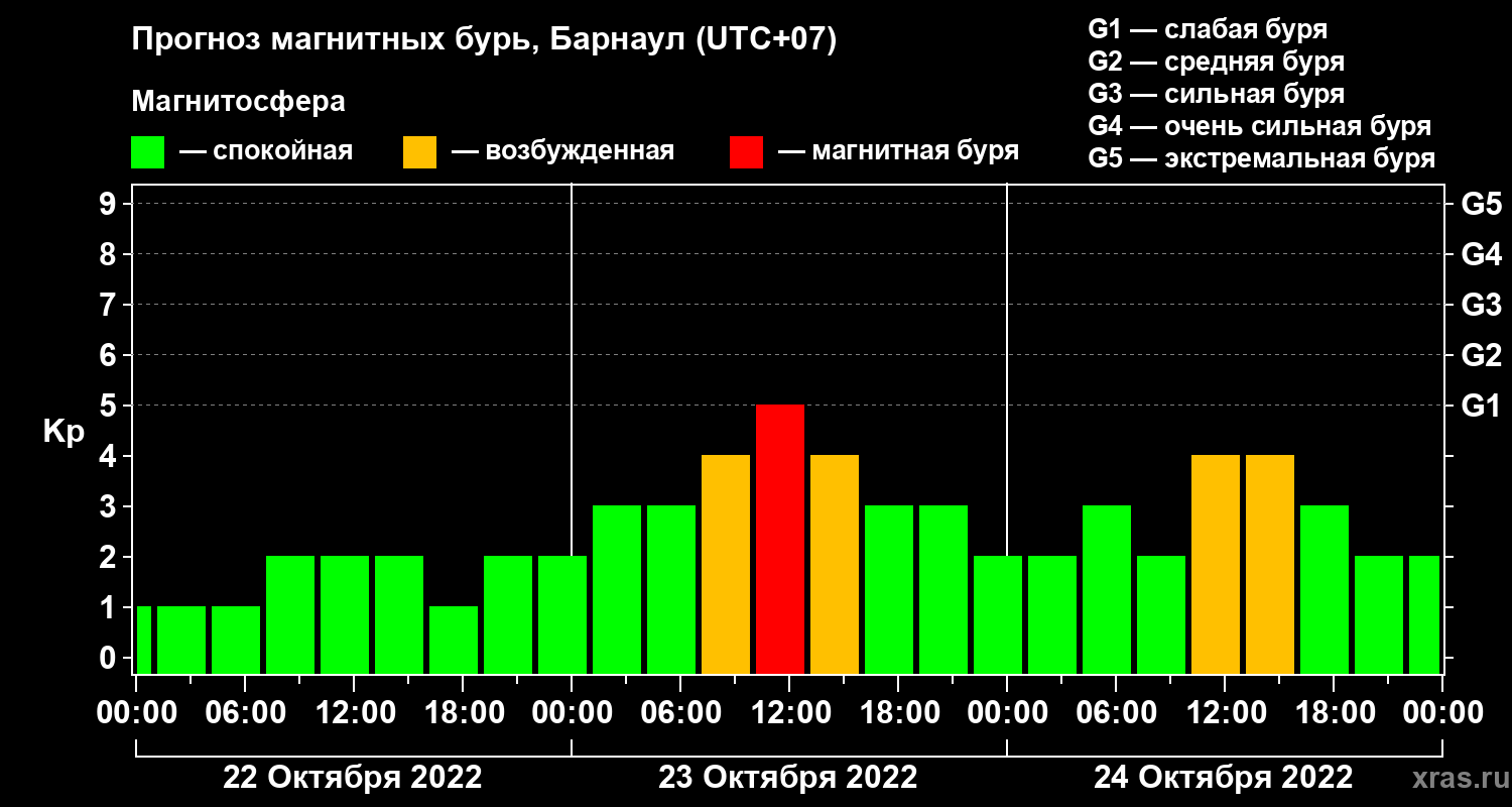 Прогноз магнитных бурь в Барнауле — 22 октября 2022 года