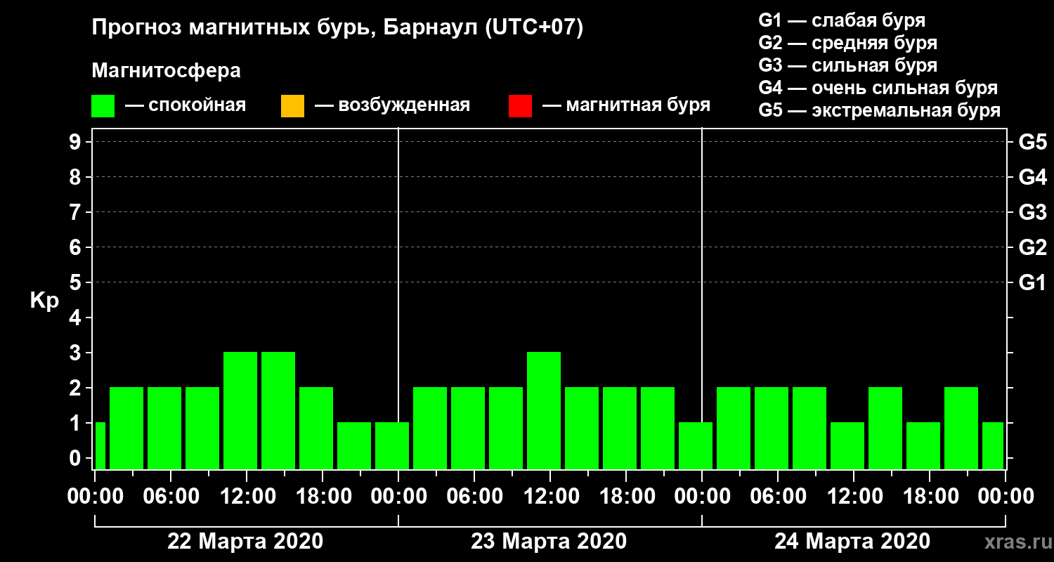 Прогноз магнитных бурь в Барнауле на 22 марта 2020 года