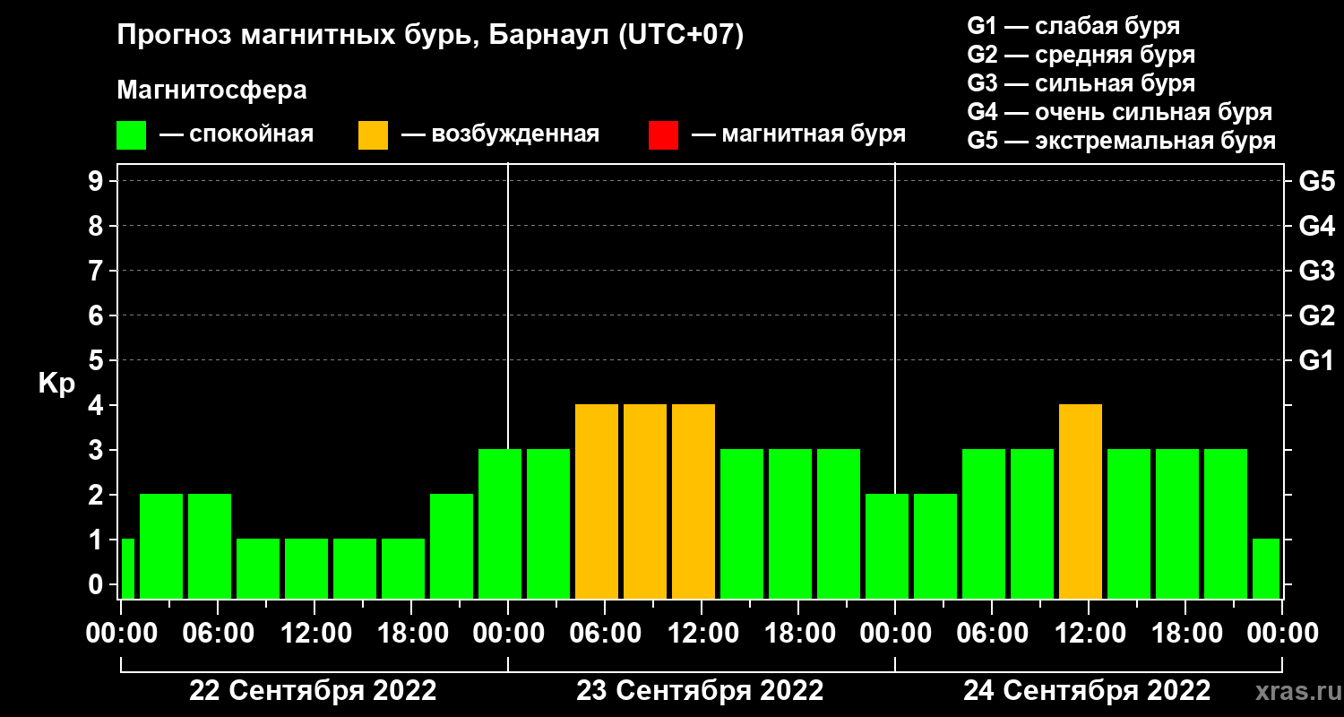 Прогноз магнитных бурь в Барнауле — 22 сентября 2022 года