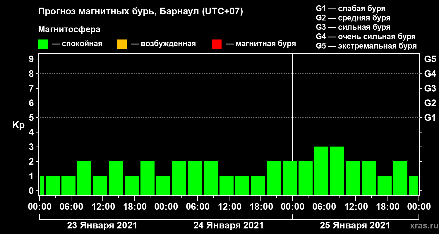Прогноз магнитных бурь в Барнауле на 23 января 2021 года