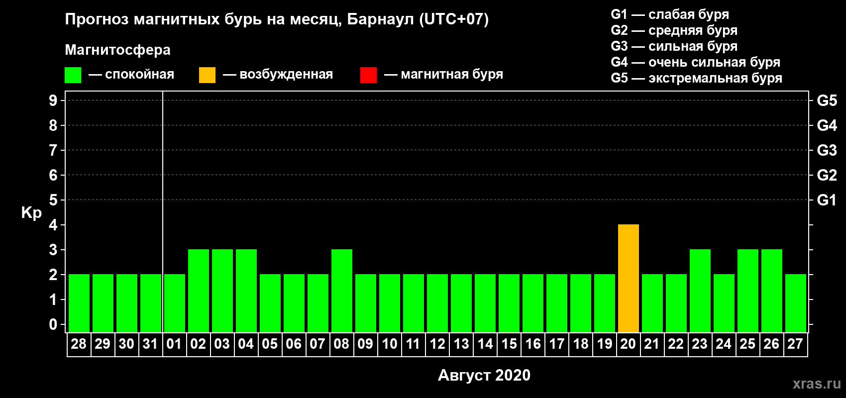 Прогноз магнитных бурь в Барнауле — 28 июля 2020 года