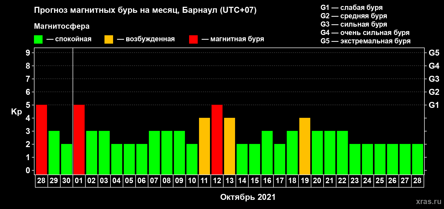 Прогноз магнитных бурь в Барнауле на 28 сентября 2021 года