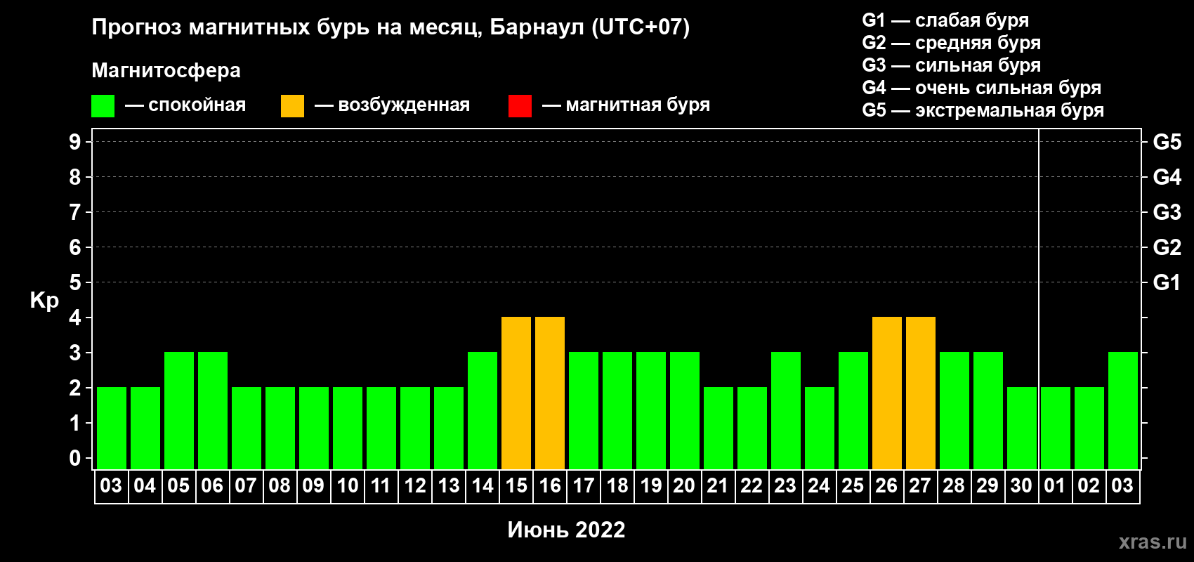 Прогноз магнитных бурь в Барнауле — 3 июня 2022 года