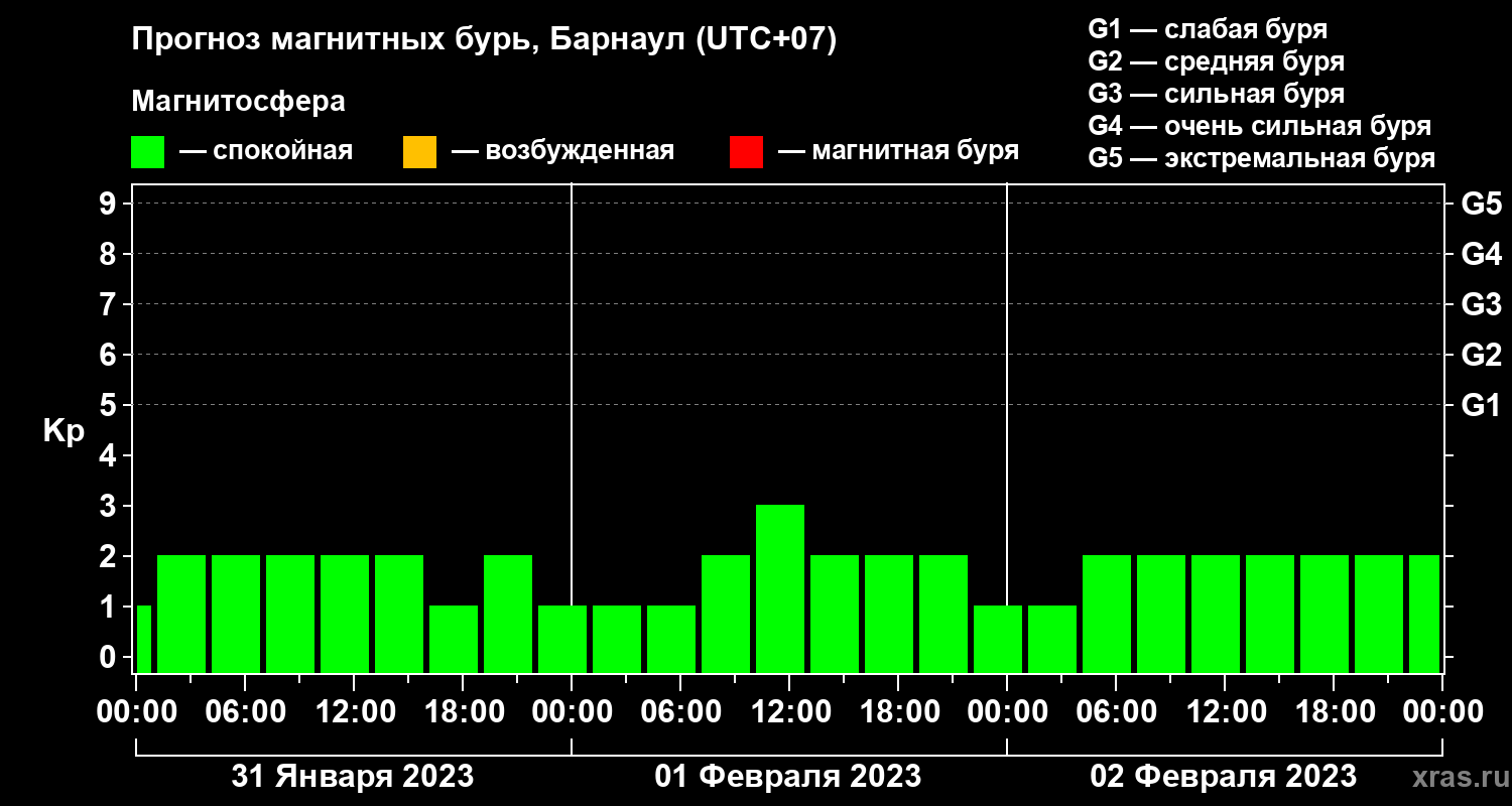 Прогноз магнитных бурь в Барнауле на 31 января 2023 года