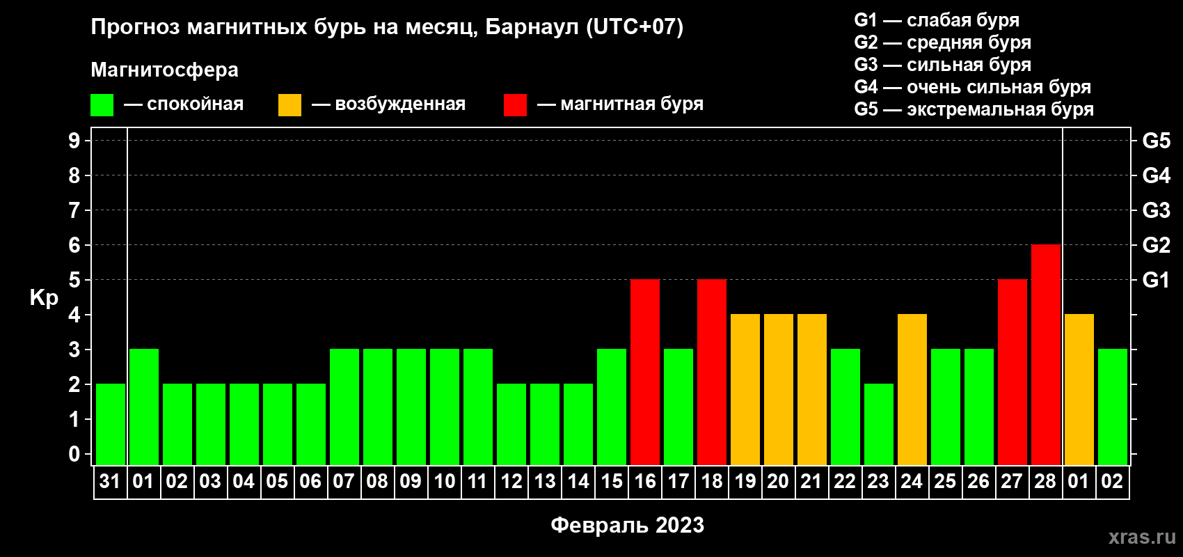 Прогноз магнитных бурь в Барнауле — 31 января 2023 года