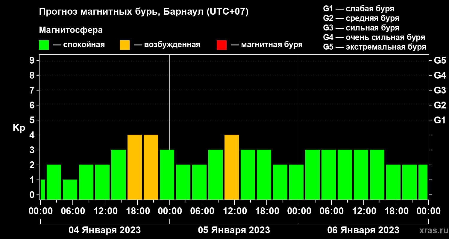 Прогноз магнитных бурь в Барнауле — 4 января 2023 года
