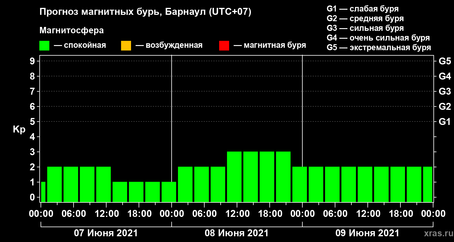 Прогноз магнитных бурь в Барнауле — 7 июня 2021 года