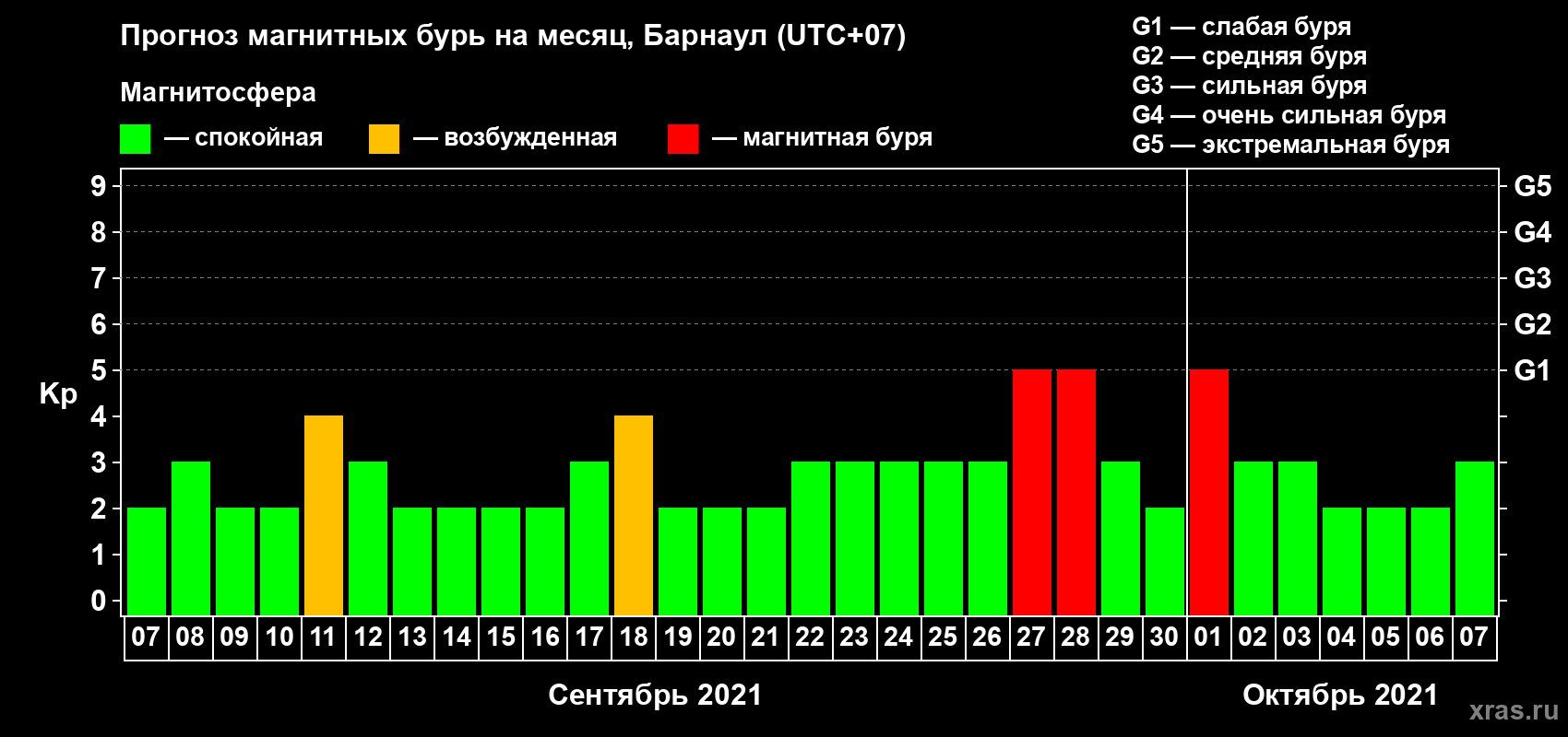 Прогноз магнитных бурь в Барнауле — 7 сентября 2021 года