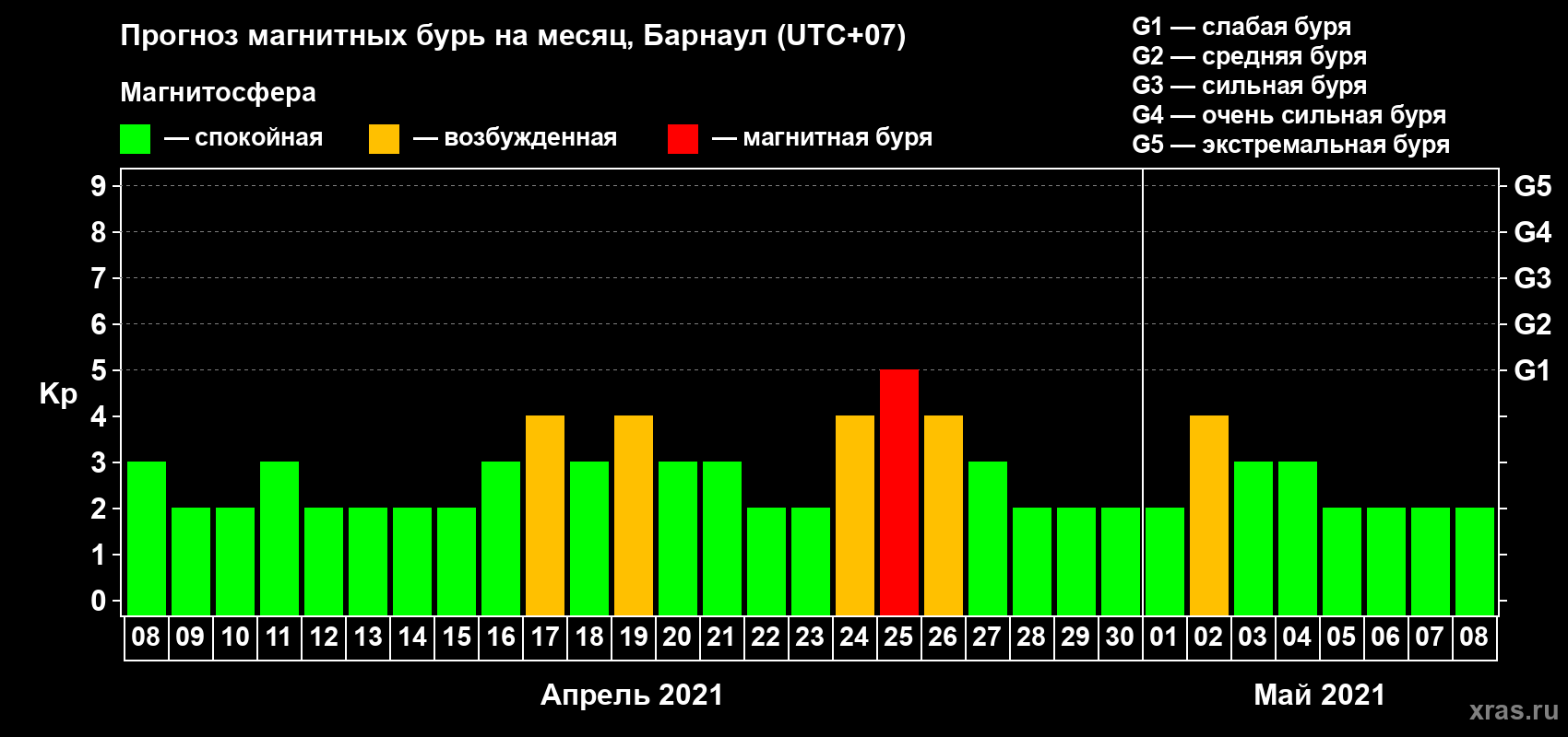 Прогноз магнитных бурь в Барнауле — 8 апреля 2021 года