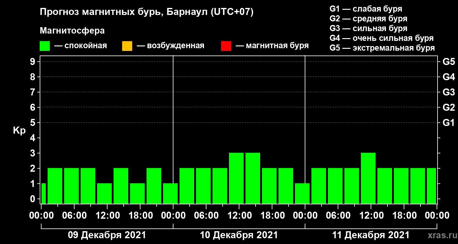 Прогноз магнитных бурь в Барнауле — 9 декабря 2021 года