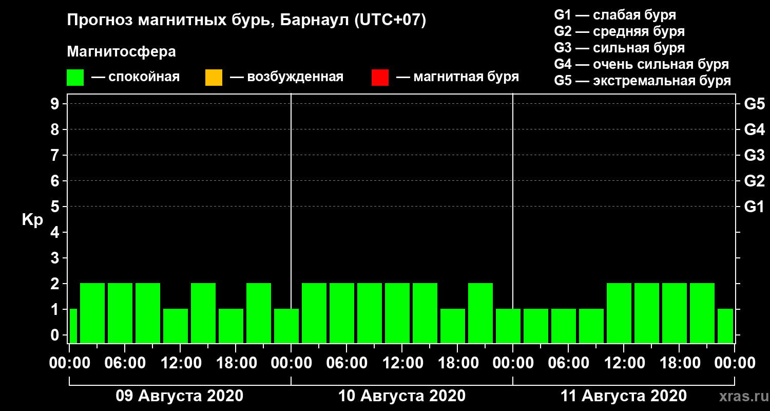 Прогноз магнитных бурь в Барнауле — 9 августа 2020 года